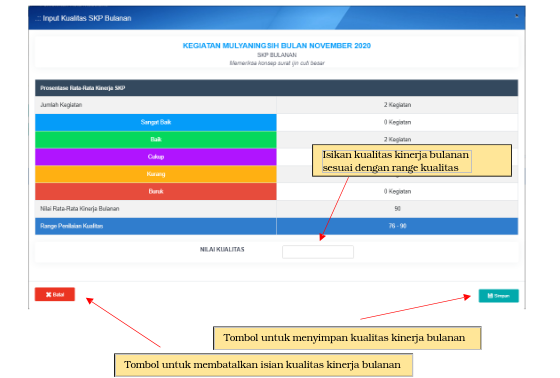 Kegunaan dari range kualitas ini adalah agar pemberian nilai kualitas oleh pejabat penilai sesuai dengan realita berdasarkan nilai kualitas kegiatan harian yang diperoleh selama bulan tersebut.