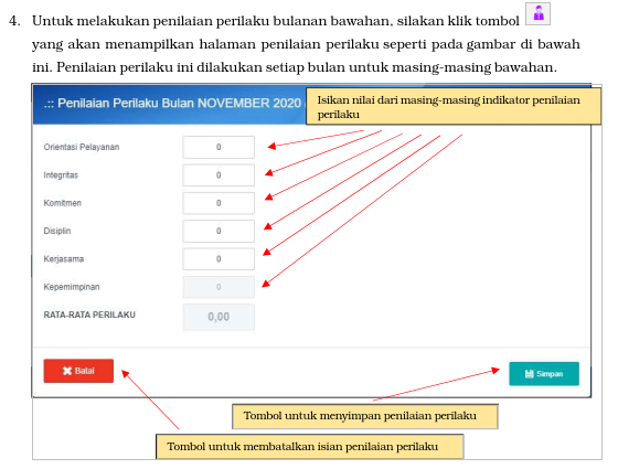 Proses ini dilakukan oleh pejabat penilai untuk memberikan penilaian kualitas masing- masing target SKP Bulanan dan juga memberikan penilaian perilaku bawahan setiap bulannya.