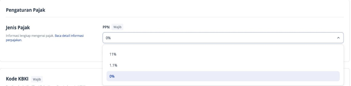 KBKI yang tersedia bergantung pada kategori yang telah dipilih penyedia.