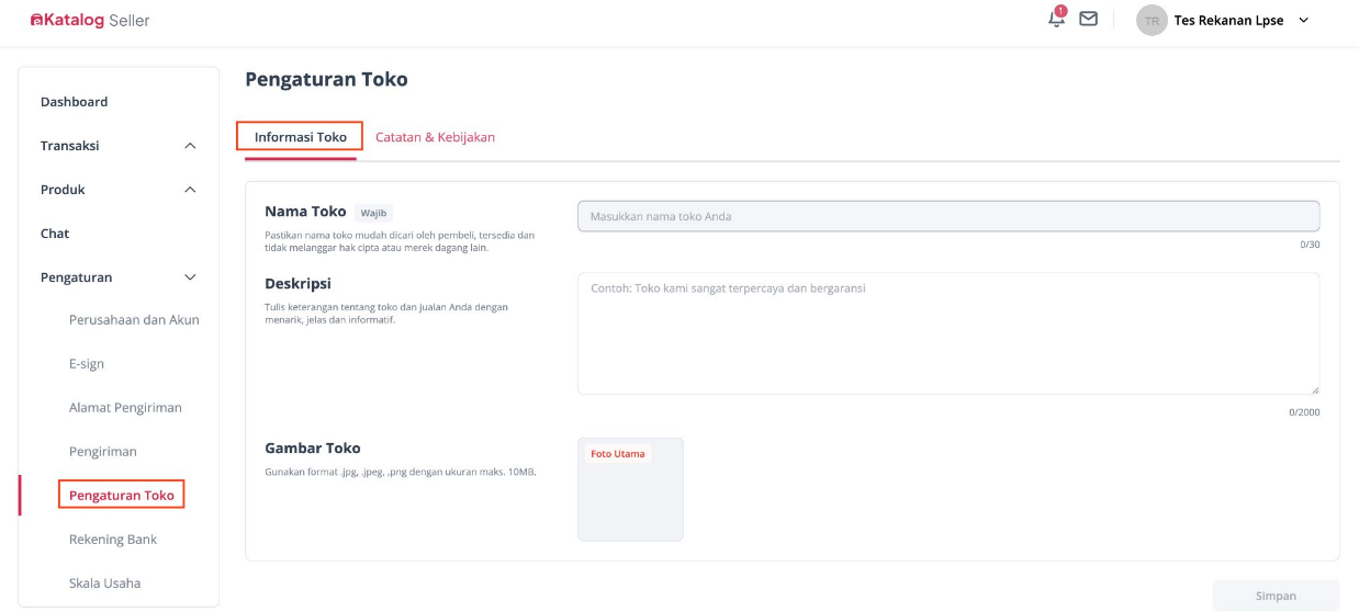 Penyedia mengisi nama toko, deskripsi, dan logo toko.