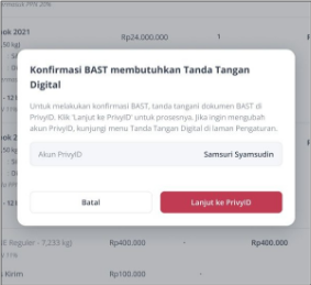 - Akan muncul kotak dialog “Konfirmasi akun PrivyID”